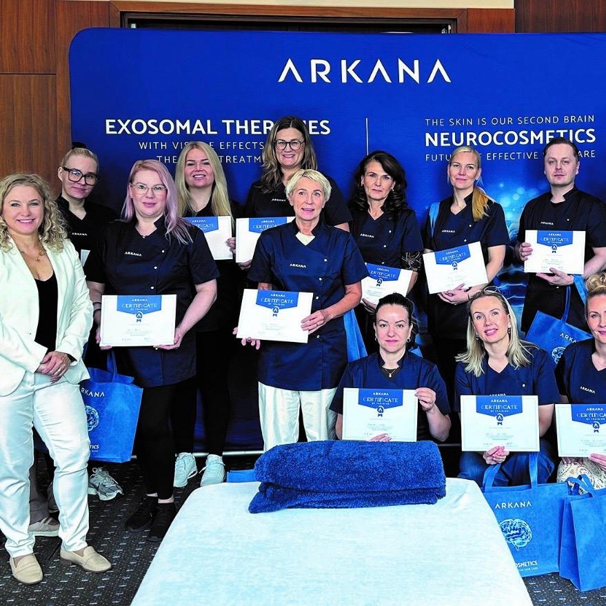 Arkana Experience -opintomatka Puolaan tarjosi unohtumattoman elämyksen neurokosmetiikan ytimessä. Kymmenen suomalaista hoitolayrittäjää sai ensimmäisinä maailmassa koulutuksen mullistavasta Volumetric-hoidosta, joka vaikuttaa ihon rasvakudokseen. Tehtaalla kaikki valmistivat itselleen kasvovoiteen, ja kohokohtana olivat keskustelut huippuasiantuntijoiden kanssa. Matkan aikana saatiin syväkatsaus neurokosmetiikkaan, biomikroneulaukseen ja eksosomeihin.